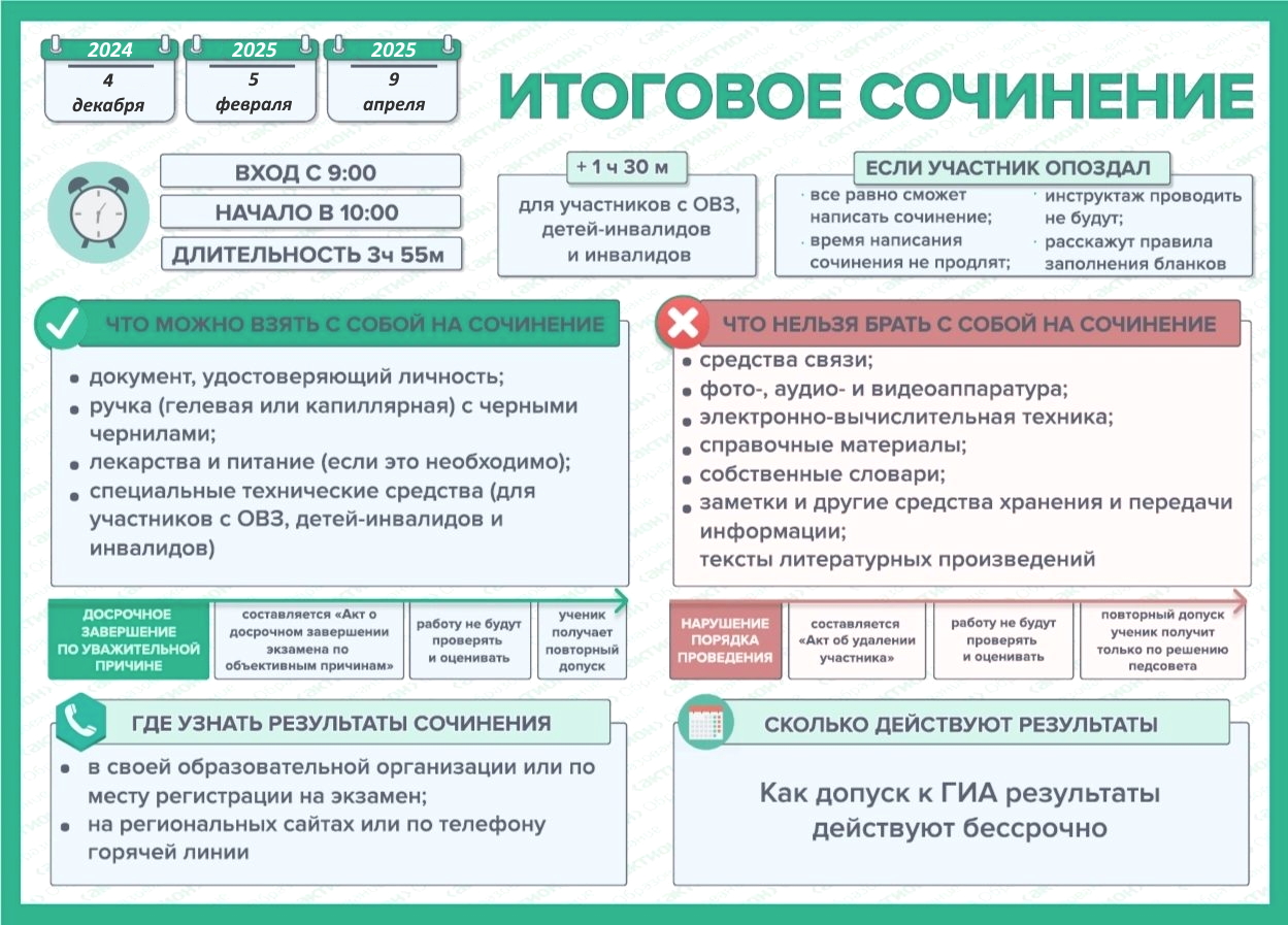 Даты проведения итогового сочинения: