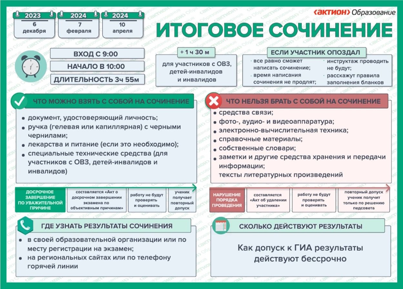 Даты проведения итогового сочинения: